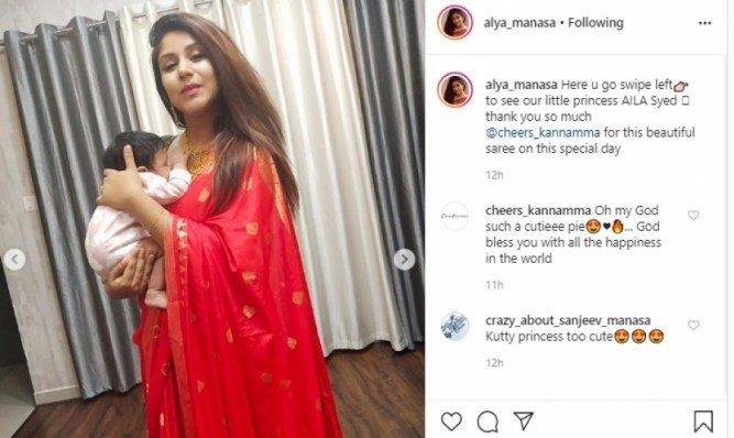 ராஜா ராணி புகழ் ஆல்யா புடவையில் குழந்தையை தூக்கி கொண்டு புகைப்படம் எடுத்து வெளியிட்டுள்ளார்.