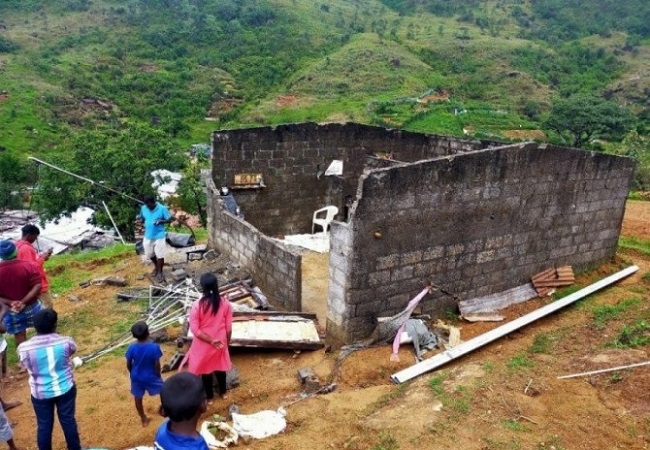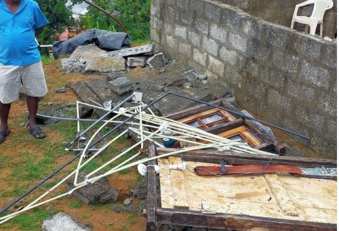 வீட்டின் கூரைகள் காற்றில் முழுமையாக அள்ளுண்டு சென்றுள்ளதுடன் வீட்டின் முன்பகுதி சுவரும் இடிந்து விழுந்துள்ளது.