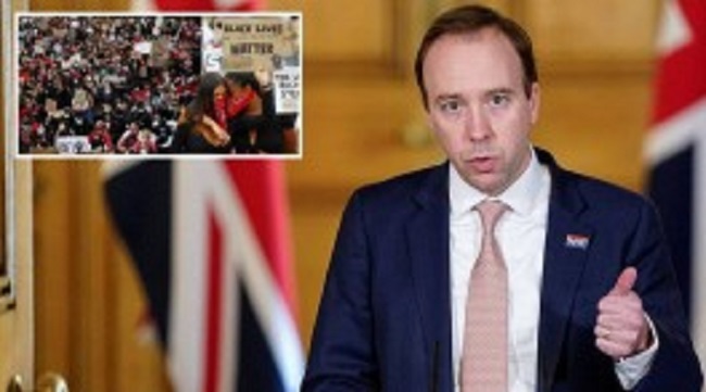 இந்நிலையில் இன்று செய்தியாளர்களை சந்தித்த சுகாதார செயலாளர் Matt Hancock, இந்த வார இறுதியில் ஆர்ப்பாட்டங்களில் கலந்து கொள்ள வேண்டாம், ஆறு பேருக்கும் மேற்பட்டவர்களின் போராட்டங்களில் கலந்து கொள்ள வேண்டாம் என்று கூறியுள்ளார்.