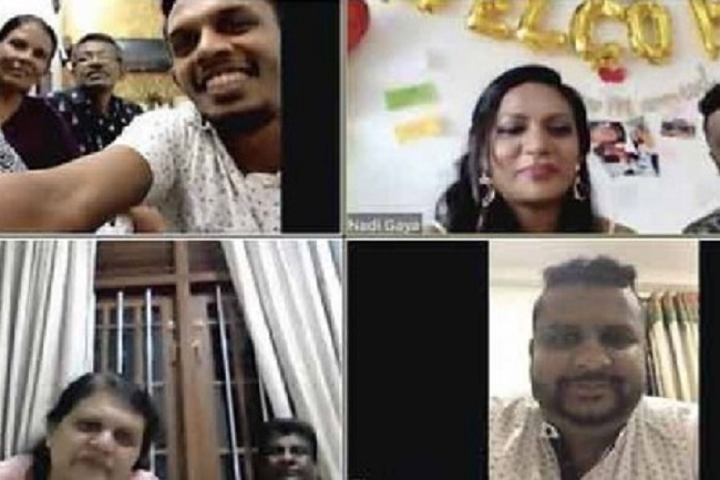 நாங்கள் இணைய வழியில் சம்பிரதாயங்களை பரிமாறிக்கொண்ட போது எனது பெற்றோர், வருங்கால கணவர், அவரது பெற்றோர், குடும்பத்தினர் மற்றும் நண்பர்கள் அனைவரும் இணையத்தளத்தில் இருந்தனர்.