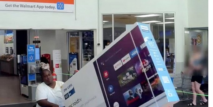 ப்ளோரிடாவில் தன்னை விட உயரமாக இருக்கும் ஒரு தொலைக்காட்சிப் பெட்டியை பட்டப்பகலில் திருடிச் செல்லும் ஒரு பெண் கமெராவில் சிக்கியுள்ளார்.