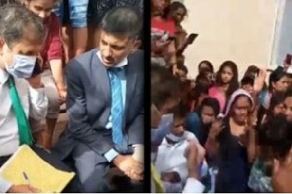 தாம் தொழில் புரியும் இடத்தில் இந்த அதிகாரிகளை பிடித்து வைத்துக்கொண்ட இலங்கை தொழிலாளர்கள் அவர்கள் வெளியேற முடியாதபடி சுற்றிவளைத்துக் கொண்டுள்ளனர்.