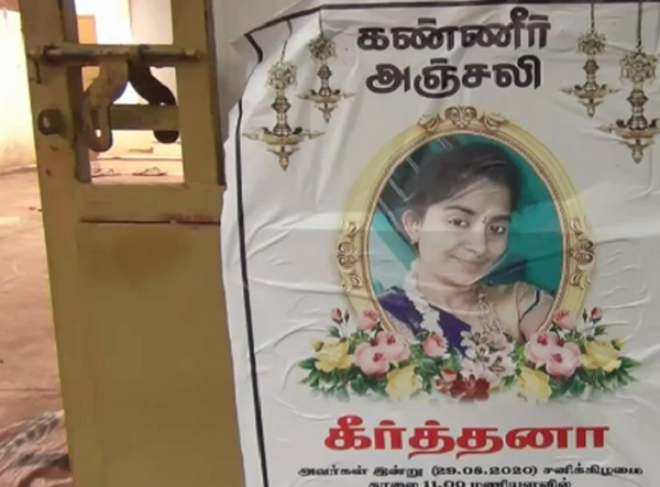 இதனால் ஆத்திரமடைந்த தந்தை ஜெயபால் தனது மகள் இறந்து விட்டதாக கூறி, தனது சொந்த ஊரில் தன் மகள் கீர்த்தனா இறந்து விட்டதாக கண்ணீர் அஞ்சலி சுவரொட்டி ஒட்டியுள்ளார். மகள் உயிருடன் இருக்கும் பொழுதே வேறு ஒருவரை காதல் திருமணம் செய்ததால், தந்தையே கண்ணீர் அஞ்சலி சுவரொட்டி ஒட்டி இருப்பது அந்த பகுதியில் பரபரப்பை ஏற்படுத்தியுள்ளது