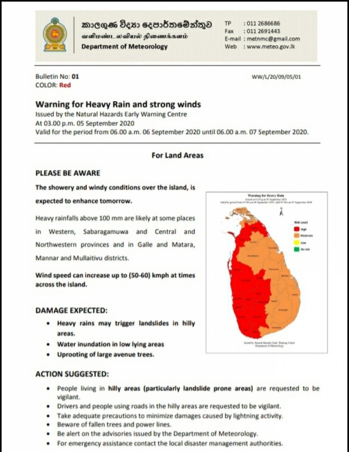 சீரற்ற வானிலை தொடர்பில் 14 மாவட்டங்களுக்கு சிவப்பு எச்சரிக்கை விடுக்கப்பட்டுள்ளது.