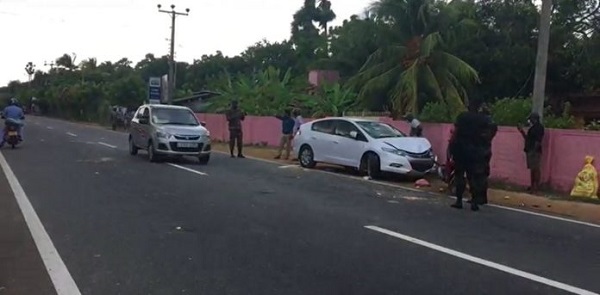 யாழ்ப்பாணம் நோக்கிய திசையில் பயணித்த மோட்டார் சைக்கிள் வலது புறம் திருப்ப முற்பட்ட வேளை அதே திசையில் பின்னால் பயணித்துக்கொண்டிருந்த கார் மோதியதாலேயே விபத்து நிகழ்ந்துள்ளது.