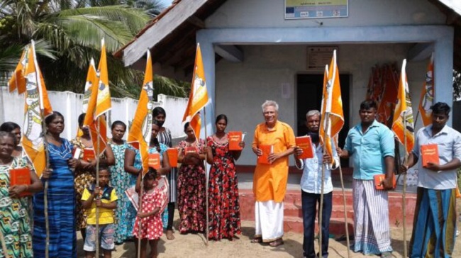 சைவ கொடிகளை ஏந்தியபடி சை தொண்டர்கள் மன்னாரின் ஒவ்வொரு வீடுகளிற்கும் வருகிறார்கள்.