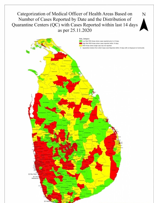 இலங்கையில் கொரோனாவால் அதிக ஆபத்துள்ள பகுதிகள் குறித்த விவரங்களை வெளியிட்டுள்ளது.