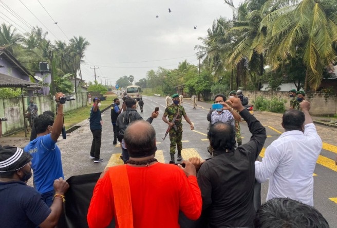 பின்னர், தாண்டியடி, திருக்கோவில், தம்பட்டை, ஆலையடி வேம்பு பகுதிகளில் வாகன பேரணியை பொலிசார் தடுத்தனர். சுகாதார விதிமுறைகளை கடைப்பிடித்தே தாம் முன்னேறுவதாக விளக்கமளித்து போராட்டம் தொடர்கிறது.