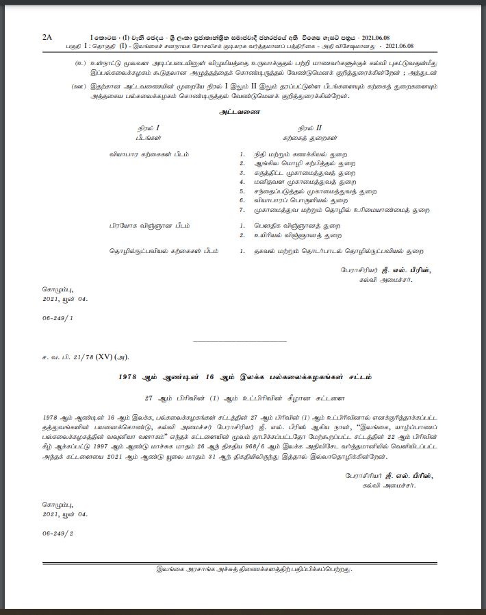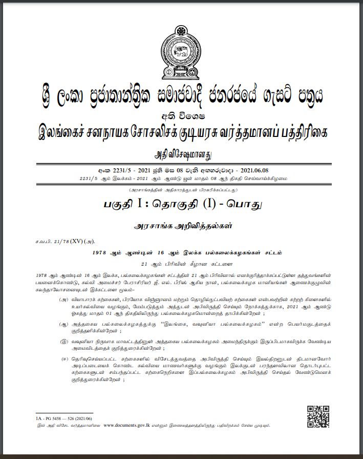 இது குறித்து விசேட வர்த்தமானி அறிவித்தல் வெளியாகியுள்ளமை குறிப்பிடத்தக்கது.