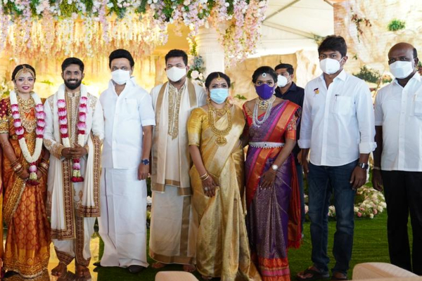 இந்த திருமண விழாவில் முதல்வர் மு.க.ஸ்டாலின், சுகாதாரத்துறை அமைச்சர் மா.சுப்பிரமணியன், நடிகரும் சட்டமன்ற உறுப்பினருமான .உதயநிதி ஸ்டாலின் ஆகியோர் கலந்துகொண்டு மணமக்களை வாழ்த்தி சென்றனர்.