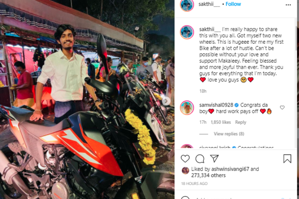 ஆனால் தற்போது குக் வித் கோமாளி மூலம் பல ரசிகர்கள் மனதை கவர்ந்துள்ளார். இந்நிலையில் குக் வித் கோமாளி சக்தி, புதிதாக பைக் ஒன்று வாங்கியுள்ளார்.