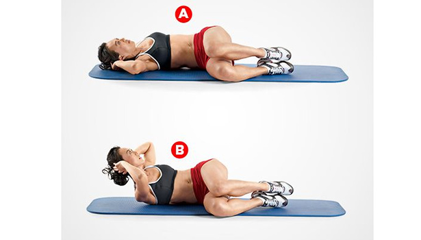 தரையில் நேராகப் படுத்துக் கொண்டு, இரண்டு கால்களையும் சமமாக நீட்டி இரண்டு கைகளையும் தலையின் பின் கட்டிக் கொள்ள வேண்டும். வலது காலின் மேலே இடது காலை வைத்து தலையை லேசாக உயர்த்தியவாறு ஓரிரு வினாடிகள் இருக்க வேண்டும். அதேபோல், இடது காலின் மேலே வலது காலை வைக்க வேண்டும். இதேபோல் 15 முறை இரண்டு கை கால்களையும் மாற்றி மாற்றி செய்ய வேண்டும்.