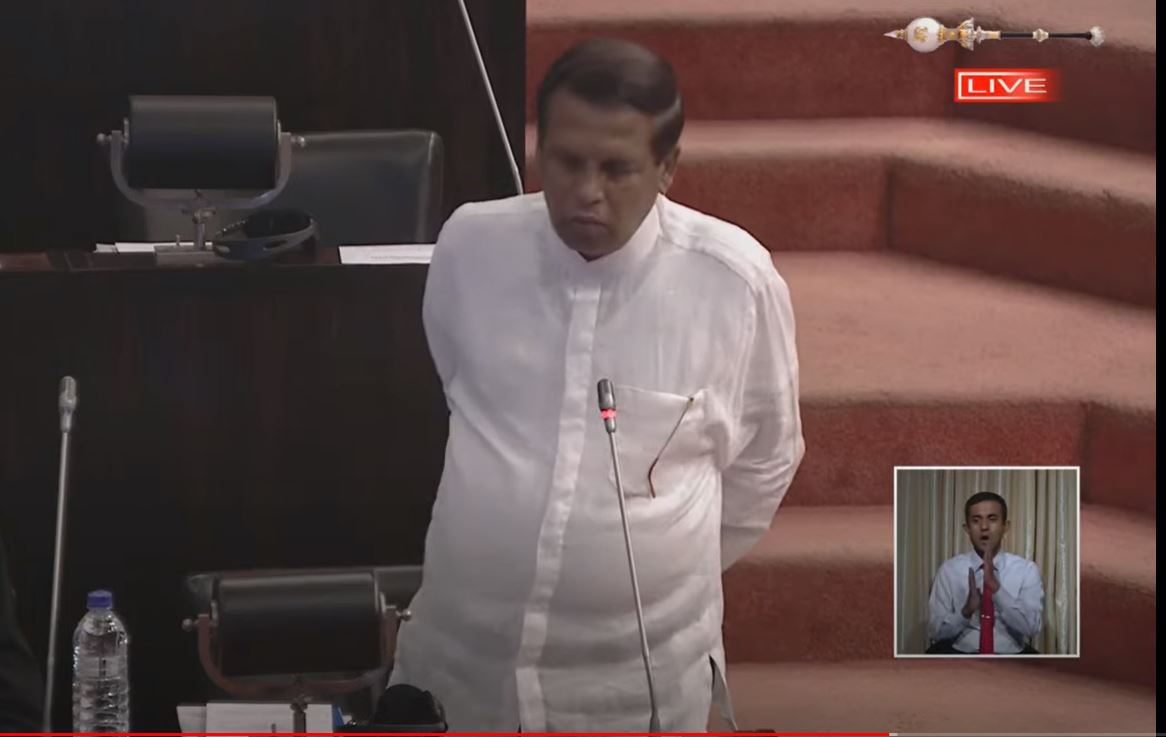 இதனையடுத்து பேசிய நாடாளுமன்ற உறுப்பினர் மைத்திரிபால சிறிசேன, கண்ணாடிக் கூண்டுக்குள் இருந்து கல்லெறிய தமக்கு விருப்பம் இல்லை என்று குறிப்பிட்டார்.