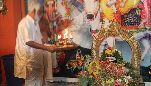 சிவாலயங்களில் சிவனுக்கு பால், தேன், தயிர், சந்தனம், பன்னீர், திருநீறு மற்றும் பஞ்சாமிர்தத்தால் அபிஷேகம் செய்து வில்வம், அரளி, தாமரை, மல்லிகை மலர்களால் அர்ச்சனை செய்த பின் தீபாராதனை நடைபெறும்.