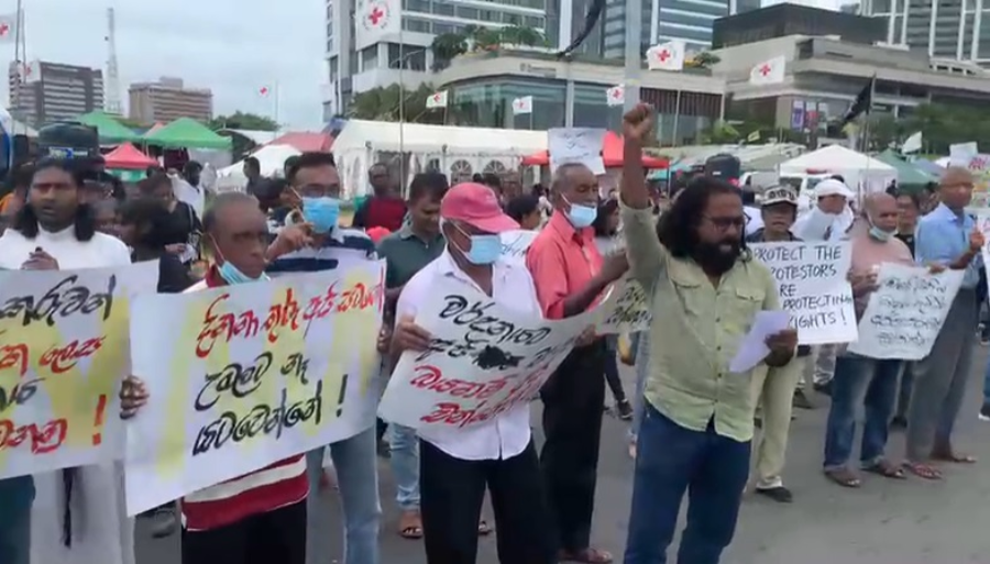 காலிமுகத்திடலில் அமைக்கப்பட்டுள்ள கோட்டாகோகம ஆர்ப்பாட்டத்தின் முன்னோடியாக செயற்பட்டு வரும் 9 பேரை கைது செய்ய முயற்சிகள் முன்னெடுக்கப்படுவதாக தெரிவித்து அதற்கு எதிர்ப்பு தெரிவித்து இந்த ஆர்ப்பாட்டம் முன்னெடுக்கப்பட்டு வருகின்றமை குறிப்பிடத்தக்கது.