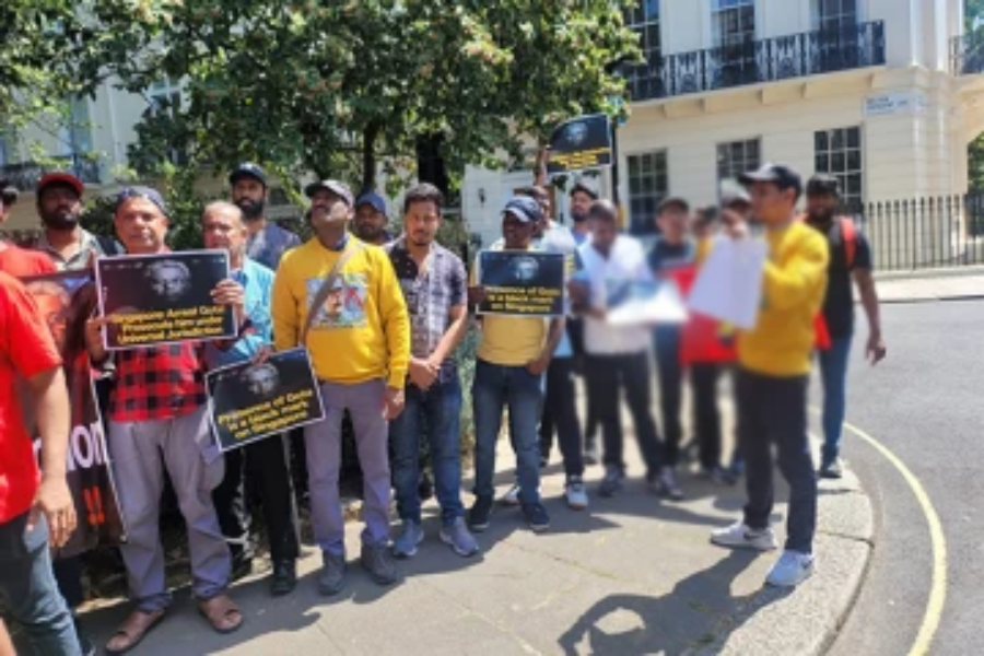 இலங்கையின் முன்னாள் ஜனாதிபதி கோட்டாபய ராஜபக்சவை கைது செய்து, நீதியின் முன் நிறுத்துமாறு வலியுறுத்தி தலைநகர் லண்டனில் உள்ள சிங்கப்பூர் தூதரகத்தின் முன் தமிழ் மக்களினால் போராட்டம் ஒன்று இன்று முன்னெடுக்கப்பட்டுள்ளது.