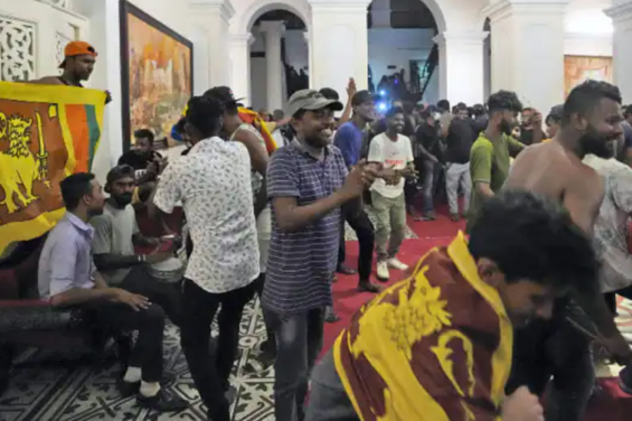 கடந்த 9ஆம் திகதி ஜனாதிபதி மாளிகை போராட்டக்காரர்களால் கைப்பற்றப்பட்டதன் பின்னர், ஜனாதிபதி கொடியை அங்கிருந்த கட்டிலில் மேற்போர்வையாக விரித்து போராட்டக்காரர் ஒருவர் அதன் மேல் படுத்திருந்தார்.