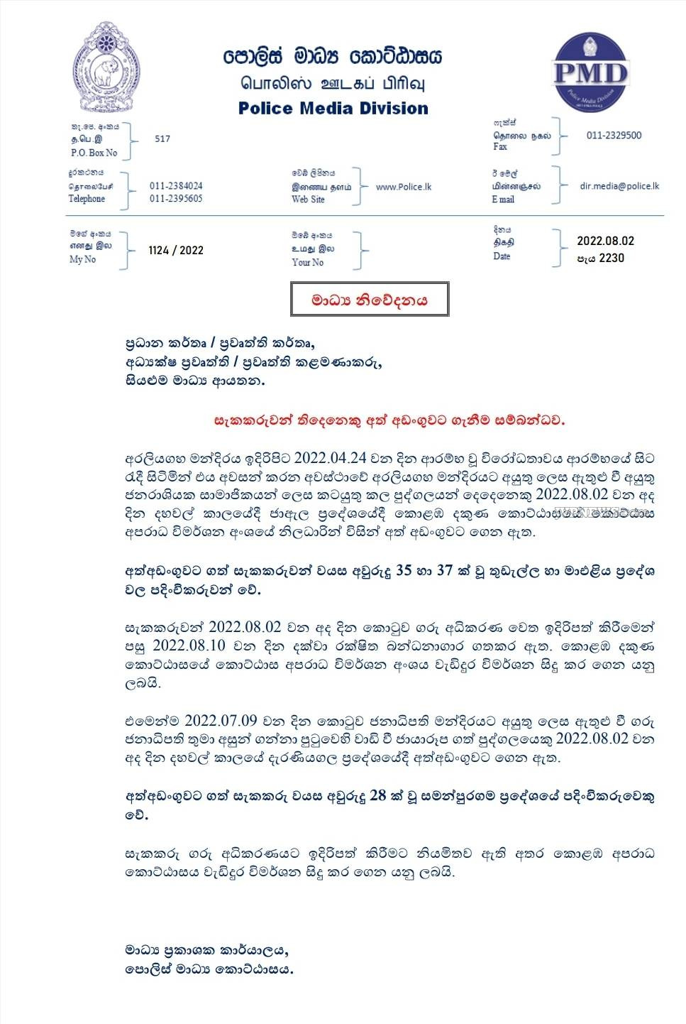 கடந்த ஜூலை மாதம் 9 ஆம் திகதி ஜனாதிபதி மாளிகைக்குள் நுழைந்து ஜனாதிபதியின் நாற்காலியில் அமர்ந்து புகைப்படம் எடுத்த குற்றத்திற்காக 28 வயதுடைய இளைஞர் ஒருவரை பொலிஸார் கைது செய்துள்ளனர்.