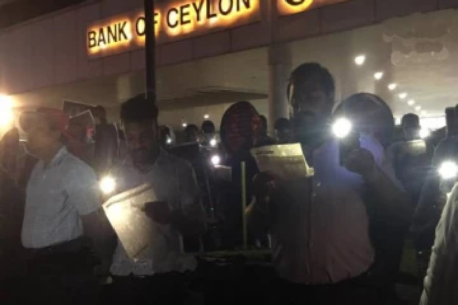 இந்தப் போராட்டத்தில் இலங்கை வங்கி ஊழியர்கள் ஈடுபட்டுள்ளனர்.