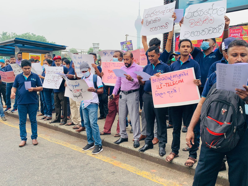 இலங்கையின் பல்வேறு பகுதிகளில் ஸ்ரீலங்கா டெலிகொம் அலுவலகங்களில் பணிபுரியும் ஊழியர்கள் கொழும்பிலுள்ள ஸ்ரீலங்கா டெலிகொம்மின் பிரதான காரியாலயத்திற்கு முன்பாக திரண்டுள்ளனர்.