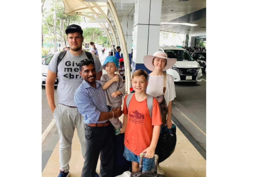 வெளிநாட்டு குடும்பத்துடன் தனது பயணத்தை மேற்கொண்டிருந்த இலங்கை சுற்றுலா வழிக்காட்டி அவர்களுடன் கட்டுநாயக்க விமான நிலையத்திற்கு சென்றுள்ளார்.