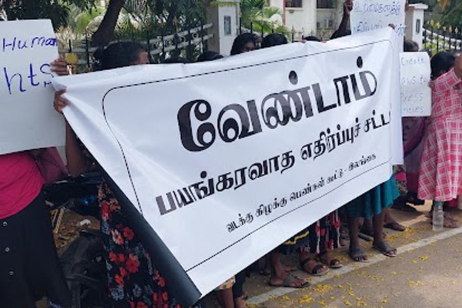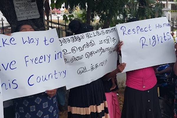 “இதன் போது மனித உரிமைகளுக்கு மதிப்பளியுங்கள், சிறுபான்மையினரை அடக்குவதற்காக புதிய சட்டத்தை உருவாக்காதே, அச்சமின்றி வாழ விடுங்கள், அச்சுறுத்தும் சட்டங்களை உருவாக்கி மனித உரிமை செயற்பாட்டாளர்களை முடக்காதே, பயங்கரவாதத்தை தடுப்பதாக கூறி மக்களை அச்சுறுத்தாதே, இந்த நாட்டில் எங்களையும் சுதந்திரமாக வாழ வழிவிடுங்கள், மக்களை வதைக்கும் சட்டங்களை உருவாக்காதே” உள்ளிட்ட பல்வேறு வாசகங்கள் எழுதப்பட்ட பதாகைகளை தாங்கியவாறு கோசங்களை எழுப்பி போராட்டத்தில் ஈடுபட்டுள்ளனர்.