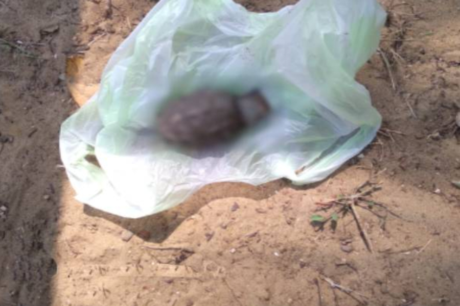 வைத்தியர் வீட்டு வளவை சுத்தம் செய்து கொண்டிருந்த பொழுது கைக்குண்டை கண்டெடுத்துள்ளார்.