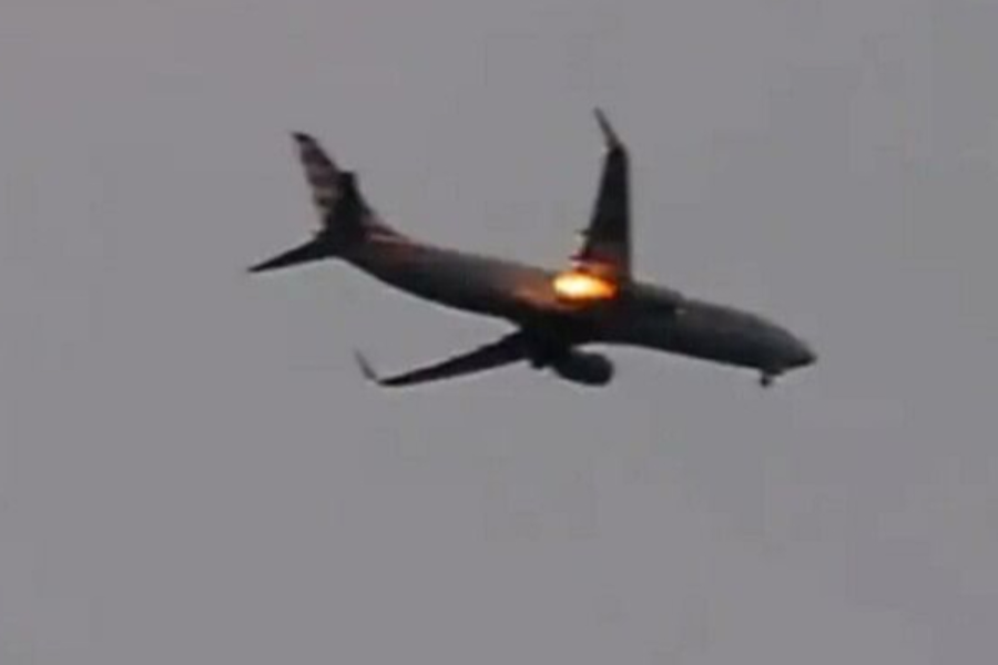 இதனால் விமானத்தின் என்ஜின் இருக்கும் பகுதியின் ஒருபுறத்தில் இருந்து புகை வெளிவந்து சிறிது நேரத்தில் தீ பிடிக்க தொடங்கியுள்ளது.