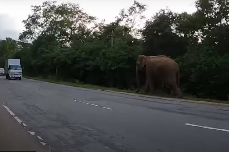 சுற்றுலாப் பயணிகள் பொலன்னறுவையில் உள்ள தேசிய பூங்காவிற்கு முச்சக்கர வண்டிகளில் சென்று கொண்டிருந்த போது வீதியின் ஓரத்தில் யானையை எதிர்கொண்டுள்ளனர்.