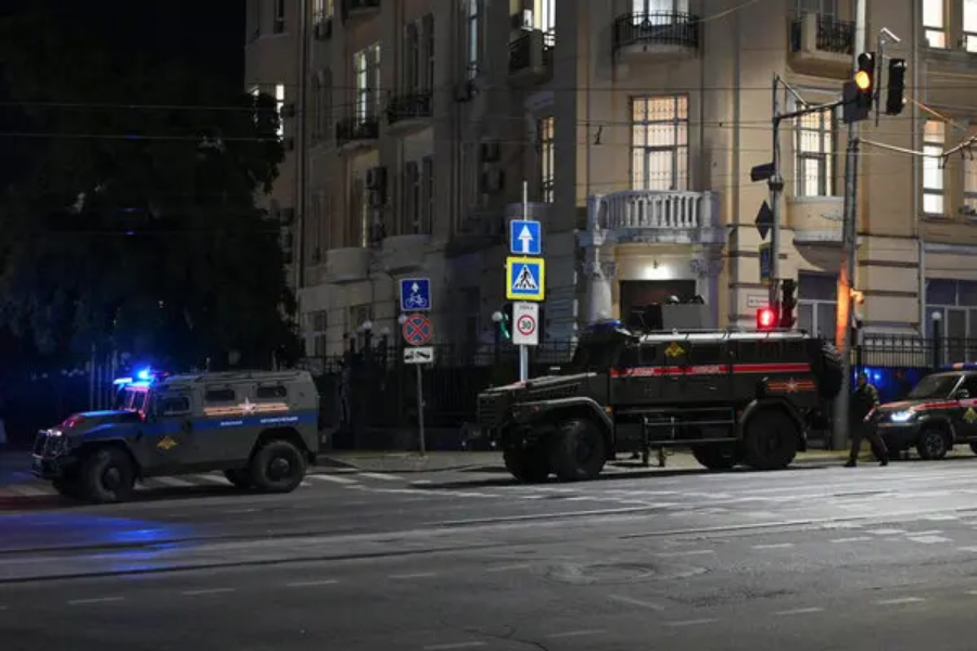 ரொஸ்டாவ் ஒன் நகரில் அரசாங்க அலுலகத்தை வாக்னர் கூலிப்படையினர் சுற்றிவளைத்துள்ளதை காண்பிக்கும் வீடியோ டெலிகிராமில் வெளியாகியுள்ளது. இந்த வீடீயோவின் உண்மை தன்மையை உறுதிசெய்துள்ள பிபிசி சீருடையணிந்த நபர்கள், ஆளுநரின் கட்டிடத்திற்கு அருகில் காணப்படுகின்றனர்.