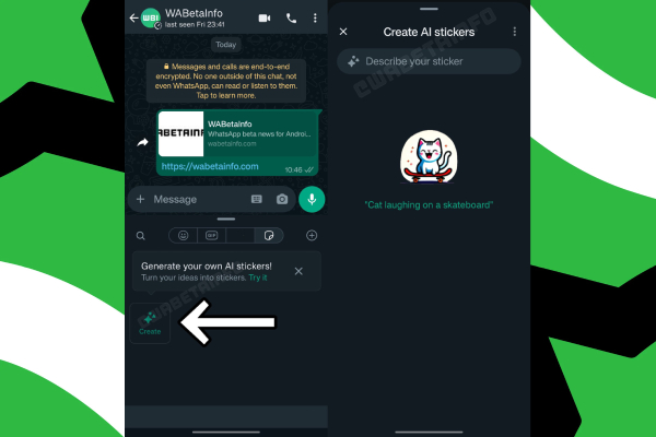இந்த அம்சத்தை கொண்டுள்ள வாட்ஸ்அப் வெர்ஷனை பீட்டா டெஸ்டர்கள் தங்கள் திறன்பேசிகளில் நிறுவி, சோதனை செய்து பார்த்துள்ளனர். பயனர்கள் தங்களது வாட்ஸ்அப் கீபோர்டில் ஸ்டிக்கர் டேபில் ‘கிரியேட்’ எனும் டேபை கிளிக் செய்து, தங்களுக்கு என்ன மாதிரியான ஸ்டிக்கர் வேண்டுமென விவரித்து, அதை உருவாக்க முடியுமாம்.