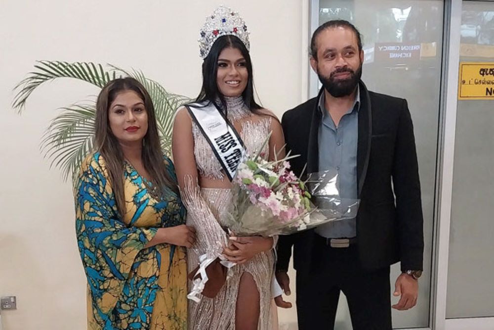இவரை வரவேற்க நெக்ஸ்ட் ஈவென்ட் மேனேஜ்மென்ட் இன்ஸ்டிட்யூட்டின் தேசியப் பணிப்பாளர் திரு.சரித் குணசேகர அவர்கள் கட்டுநாயக்க விமான நிலையத்தின் வருகை முனையத்தில் அவரது சக மாடல்கள் மற்றும் பெற்றோர்கள் வருகை தந்திருந்ததாக தெரிவிக்கப்பட்டுள்ளது.