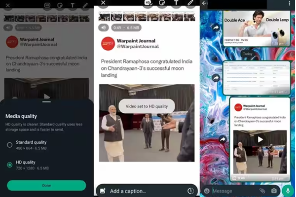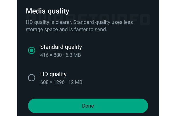 வாட்ஸ்அப்பில் உள்ள காணொளிகள் 480p வரை மட்டுமே இருந்தன, ஆனால் இப்போது பயனர்கள் 720p தெளிவுடன் பகிரலாம்.