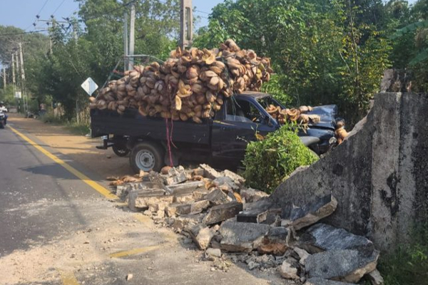 யாழில் பொச்சு மட்டைகளை ஏற்றி வந்த பட்டா வாகனம் ஒன்று கட்டுப்பாட்டை இழந்து வீதியை விட்டு விலகி மதிலை உடைத்து விபத்துக்குள்ளாகியுள்ளது.