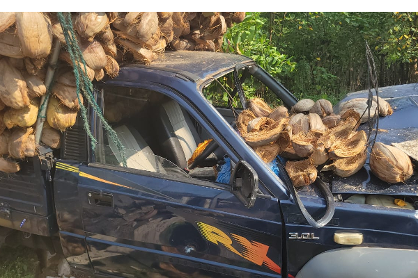 இந்த சம்பவம் யாழ்.சாவகச்சேரி நுணாவில் A9 வீதியில் நேற்று பிற்பகல் 3.00 மணியளவில் இடம்பெற்றுள்ளது. சாவகச்சேரியிலிருந்து பொச்சு மட்டைகளை ஏற்றிக்கொண்டு யாழ்ப்பாணம் நோக்கி பயணித்த போதே விபத்துக்குள்ளானது.