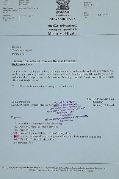 “சுகாதார அமைச்சு தனது மருத்துவ நிர்வாகத்தை பறித்து, பேராதனை போதனா வைத்தியசாலைக்கு வைத்திய அதிகாரியாக தரமிறக்கியுள்ளது. சுகாதார அமைச்சின் குறைபாடுகளை வெளிப்படையாக விவாதித்த ஒருவருக்கு இது முறையான தண்டனையாக நான் கருதுகிறேன்.