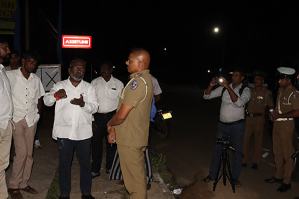 குறித்த கவனயீர்ப்பு நடவடிக்கையானது தேர்தல் விதிமுறைக்கு மீறிய செயலெனவும் அவ்வாறு கவனயீர்ப்பு மேற்கொள்ளப்படுமாயின் கைது செய்யப்படுவீர்கள் எனவும் பொலிசாரால் எச்சரிக்கப்பட்டதை தொடர்ந்து கவனயீர்ப்பு நடவடிக்கை நிறுத்தப்பட்டது.