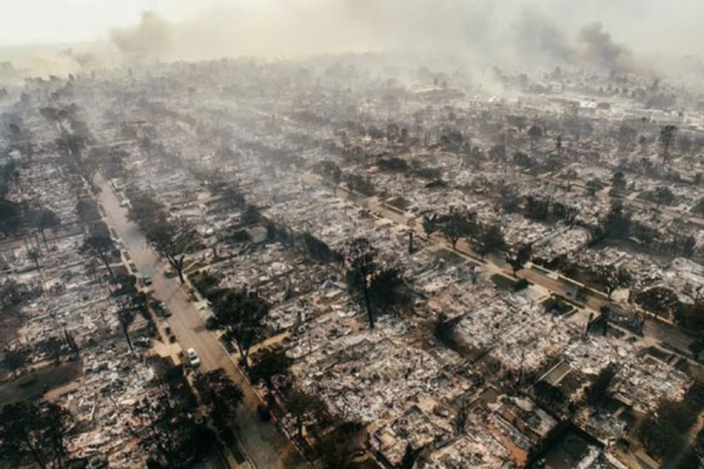 லொஸ் ஏஞ்சல்ஸ் நகரில் பரவிய காட்டுத் தீ காரணமாக 300,000 பேர் வரை அப்பகுதியில் இருந்து இடம்பெயர்ந்துள்ளதாகவும் 10,000இற்கும் அதிகமான வீடுகள் பாதிக்கப்பட்டதாகவும் கூறப்படுகின்றது.