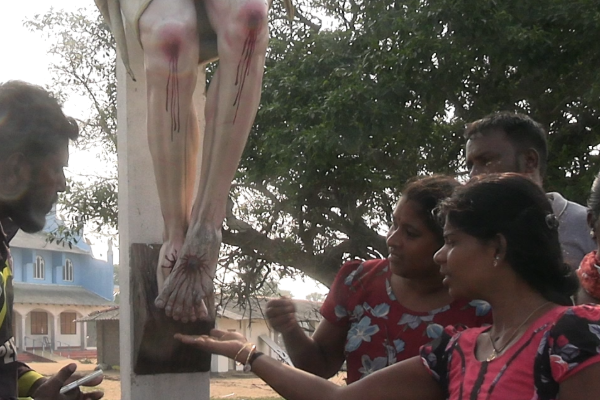 சுமார் மூன்று மணித்தியாலங்களுக்கு மேலாக இயேசுவின் விரல் பகுதியில் இருந்து நீர் கசிந்துள்ளதாக கூறப்படுகின்றது.