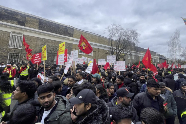 பிரித்தானியா லண்டனில் அமைந்துள்ள சிறீலங்காத் தூதரகத்திற்கு முன்பாக பிரித்தானியத் தமிழர்கள் போராட்டம் ஒன்றை நடத்தியுள்ளனர்.