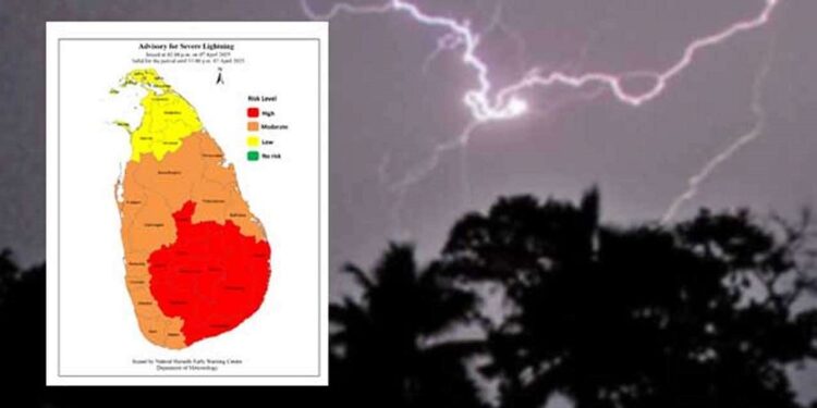 பலத்த மின்னல் தாக்கம் தொடர்பில் வளிமண்டலவியல் திணைக்களம் முன்னெச்சரிக்கை அறிவிப்பை விடுத்துள்ளது.