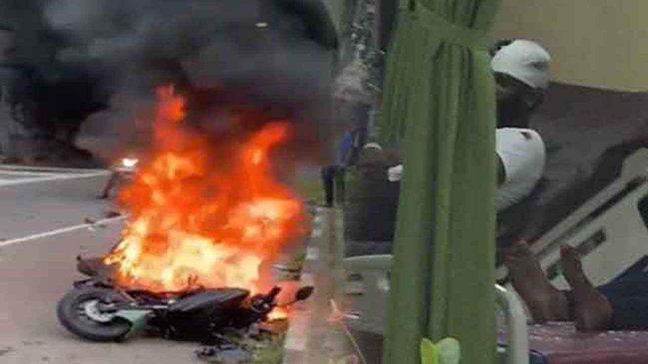 மோட்டார் சைக்கிளுக்கு தீ வைக்கப்பட்டதால், கொட்டகலை சுரங்கப்பாதை அருகே கடும் வாகன நெரிசல் ஏற்பட்டிருந்தது.