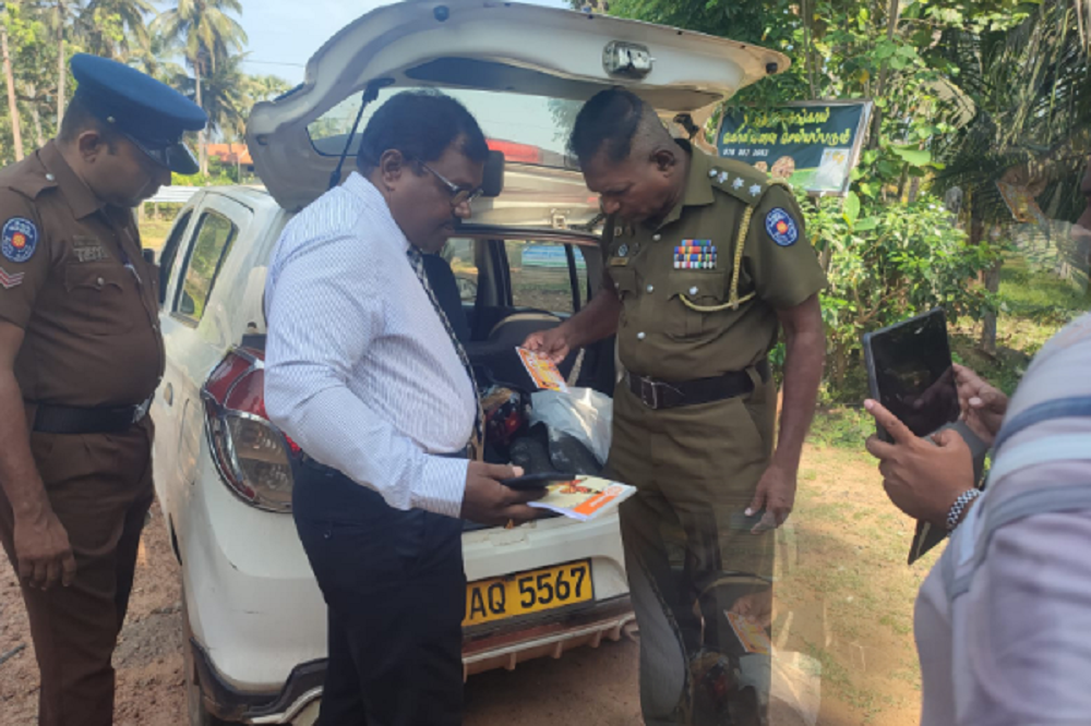 தேர்தல் திணைக்கள உத்தியோகத்தர்கள் இணைந்து குறித்த நபரை கைது செய்து புதுக்குடியிருப்பு பொலிஸ் நிலையம் அழைத்து செல்லப்பட்டுள்ளார்.