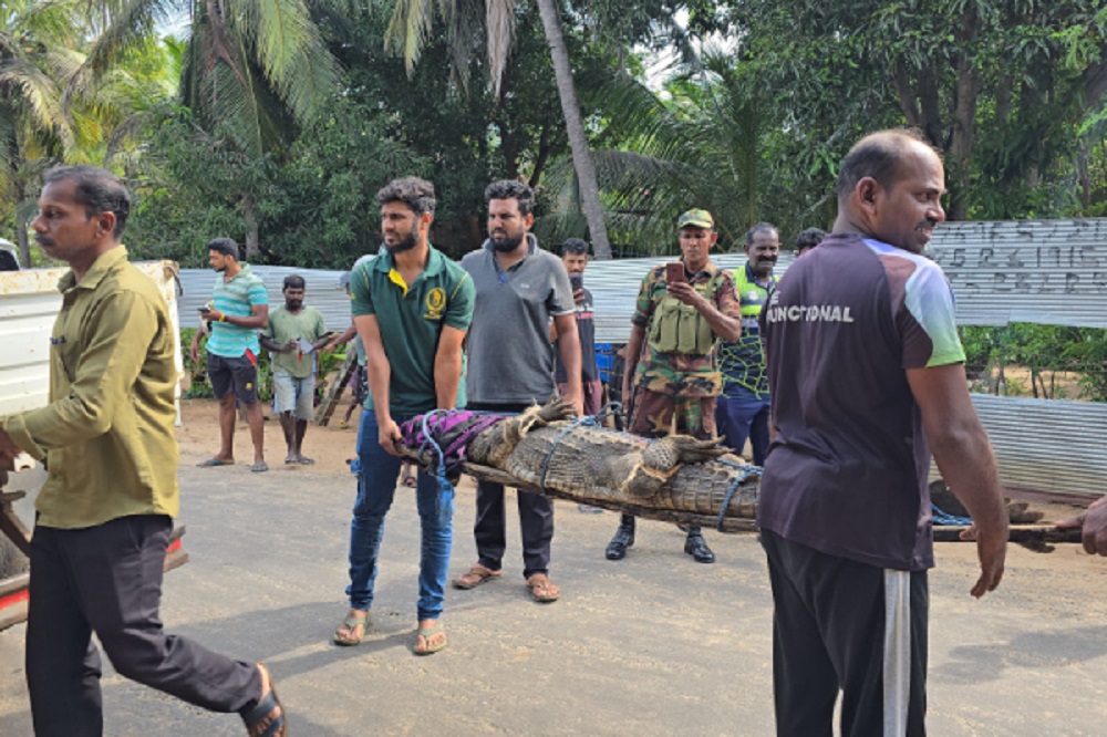 பிரதேச மக்கள் குறித்த முதலையை பாதுகாப்பாக மடக்கி பிடித்தனர். அதோடு உடனடியாக வனஜீவராசிகள் திணைக்களத்தை தொடர்புகொண்டு முதலையை அதிகாரிகளிடம் ஒப்படைத்தனர்.