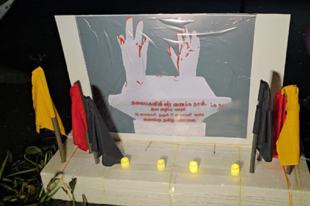அத்துடன், தலைமகனின் வீர வணக்க நாள், இன அழிப்பு வாரம் 12 வைகாசி முதல் 17 வைகாசி வரை, பொங்கு தமிழ் பேரவை என வாசகம் பொறிக்கப்பட்டு அதற்கு அருகில் கறுப்பு ,சிவப்பு, மஞ்சள் கொடிகள் ஏற்றப்பட்டு அதனை சுற்றி மொழுகுதிரி போன்ற வடிவிலான முன்விளக்குகள் ஒளிரவிட்டு மிதக்கும் முறையில் தயாரிக்கப்பட்டு வாவியில் விடப்பட்டுள்ளது.