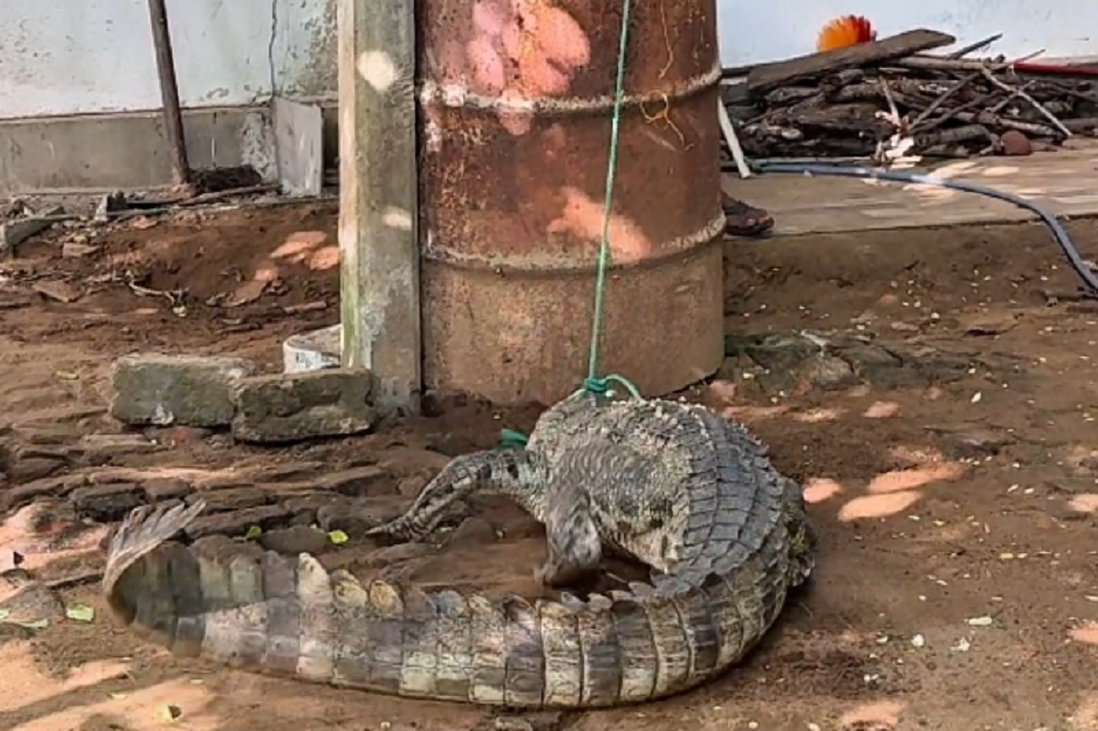 முதலை சுமார் 6 அடி நீளம் கொண்ட அந்த முதலையால் பிரதேசவாசிகள் அச்சம் அடைந்துள்ளனர்.