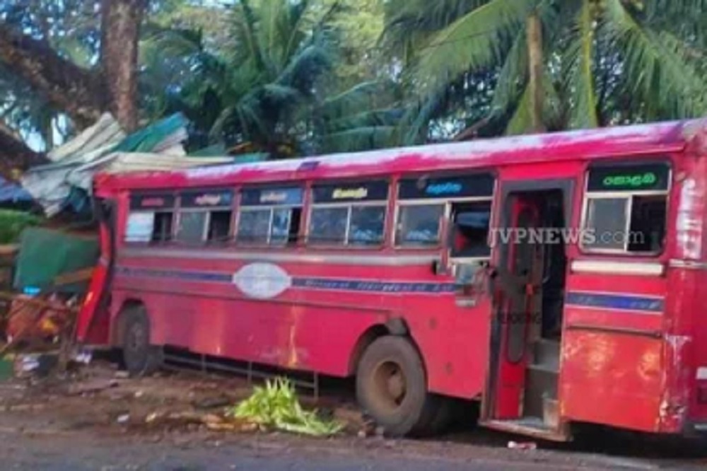விபத்து ஏற்பட்ட போது சாரதியும் நடத்துனருமே காணப்பட்டுள்ள நிலையில், குறித்த பஸ் வண்டி கண்டி – கொழும்பு வழித்தடத்தில் சேவையிலீடுபடுகின்றமை குறிப்பிடத்தக்கது.