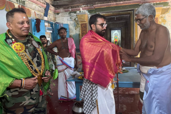 யாழ்ப்பாணத்தில் உள்ள உயர் பாதுகாப்பு வலயத்தினுள் உள்ள பலாலி இராஜ இராஜேஸ்வரி அம்மன் ஆலயத்தில் இன்றைய தினம் ஞாயிற்றுக்கிழமை விசேட பூஜை வழிபாடுகள் இடம்பெற்றன.