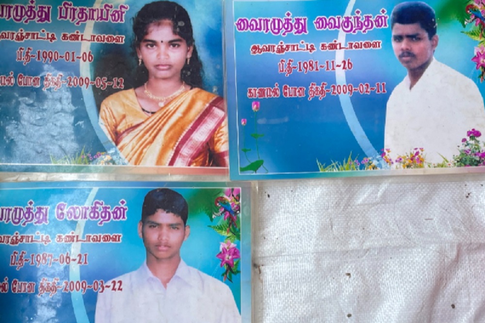 கிளிநொச்சி கண்டாவளை பகுதியை சேர்ந்த வைரமுத்து நிரஞ்சனாதேவி என்பவரின் மகன்களான , வைரமுத்து வைகுந்தன் 2009ஆம் ஆண்டு 02ஆம் மாதம் 11ஆம் திகதி காணாமல் ஆக்கப்பட்டுள்ளார்.
