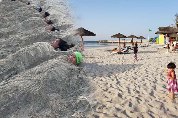 அரேபிய நாடான சார்ஜா கடற்கரையில் சூரிய உதயத்திற்கு முன், விடியற்காலை நேரத்தில் பலர் மணல் குளியல் செய்கின்றமை பிரபலமாகியுள்ளது. முதலில் ஆழமற்ற குழிகள் கடற்கரை மணலில் தோண்டப்படுகிறது.